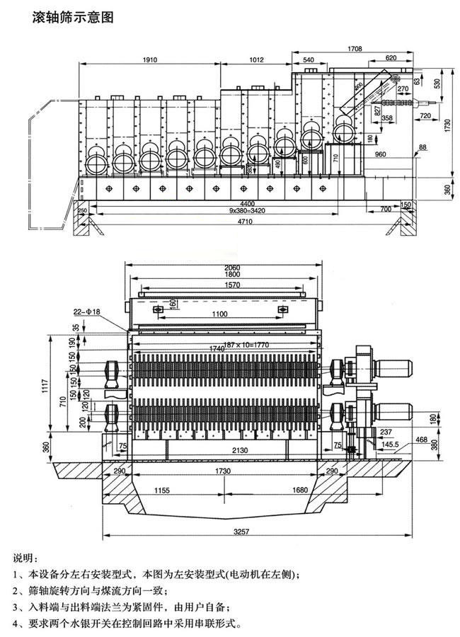 注:以上型號尺寸為標準滾軸篩分機機型,如用戶有特殊要求可量身定做。